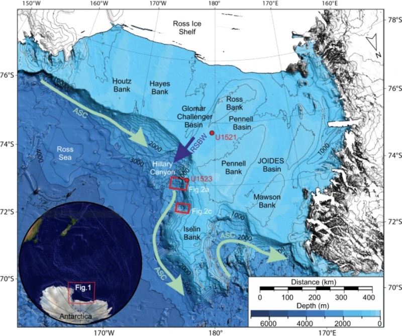 Οι γεωτρήσεις σε πυρήνες ιζημάτων εκατοντάδες μέτρα κάτω από τον πυθμένα της θάλασσας στην Ανταρκτική, έδειξαν ότι πριν από εκατομμύρια χρόνια σημειώθηκαν κατολισθήσεις στην περιοχή οι οποίες οφείλονταν στην θέρμανση των ωκεανών. Οι ερευνητές ανακάλυψαν για πρώτη φορά στοιχεία αρχαίων κατολισθήσεων στα ανοικτά της Ανταρκτικής το 2017 στην ανατολική Θάλασσα Ρος. Παγιδευμένα κάτω από αυτές τις κατολισθήσεις βρίσκονται στρώματα ιζημάτων που είναι γεμάτα με απολιθωμένα θαλάσσια πλάσματα, γνωστά ως φυτοπλαγκτόν.