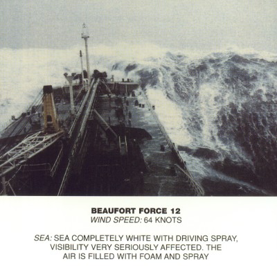 8 | Θυελλώδης (Gale) | Πολύ κυματώδης έως τρικυμιώδης | Μεγάλα δέντρα κινούνται ολόκληρα και μικρά κλαδιά σπάνε. Η οδήγηση γίνεται δύσκολη και το περπάτημα ενάντια στον άνεμο εξαιρετικά δύσκολο. | Η θάλασσα αρχίζει να φουρτουνιάζει. Σχετικά ψηλά κύματα (4 - 6 μ.) με προεξέχουσες κορυφές που αρχίζουν να σπάνε. Σχηματίζονται έντονες λωρίδες αφρού κατά τη διεύθυνση του ανέμου. Μεγάλες ποσότητες αιωρούμενου αφρού. |