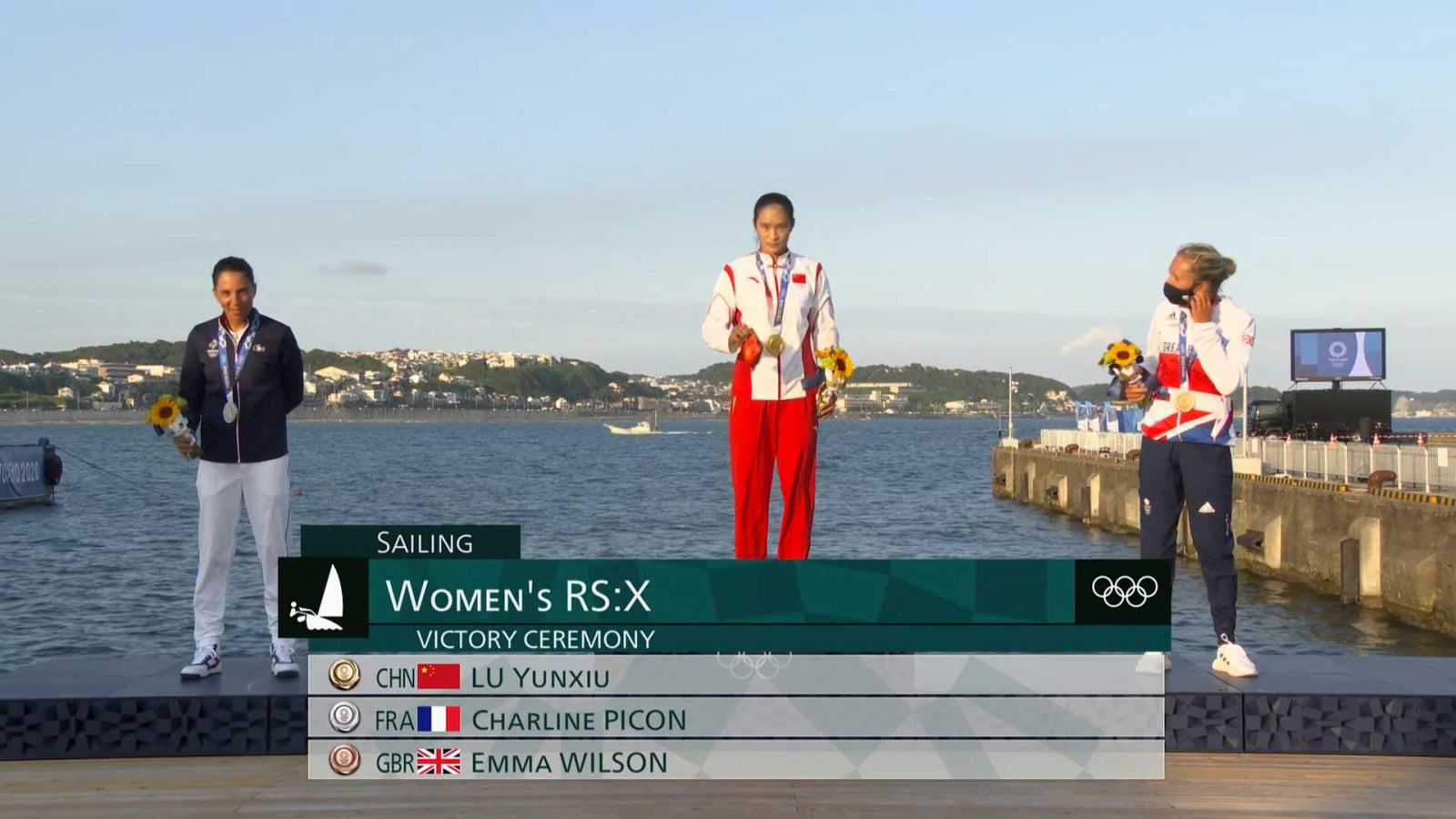 Στις γυναίκες υπήρξε σκληρή μάχη μεταξύ τριών αθλητριών για το βάθρο. Οι χαμηλές συνθήκες ανέμου ανάγκασαν τους windsurfers να κάνουν pumping για να πάνε πιο γρήγορα. Οι θέσεις άλλαζαν καθ 'όλη τη διάρκεια του αγώνα μεταλλίων και, στο τέλος, η Yunxiu Lu εξασφάλισε το χρυσό, η Charline Picon πήρε το αργυρό και η Emma Wilson το χάλκινο.